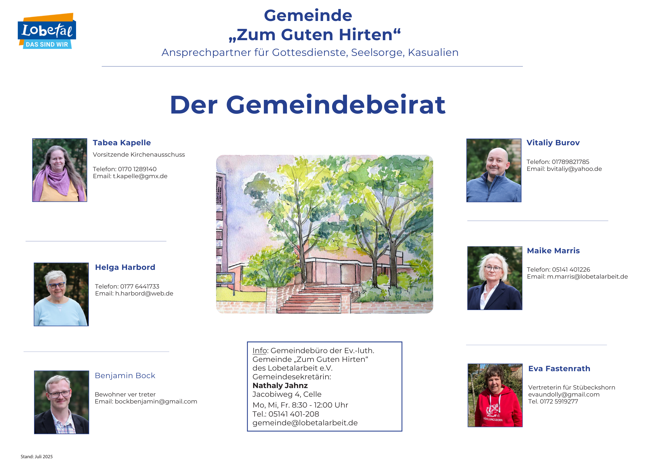 Der Gemeindebeirat unterstützt die Entwicklung und Gestaltung des Gemeindelebens aktiv mit. Er bringt unterschiedliche Perspektiven aus der Gemeinde zusammen, berät bei wichtigen Entscheidungen und wirkt daran mit, Angebote und Projekte zukunftsorientiert weiterzuentwickeln. Als Bindeglied zwischen Gemeindeleitung und Gemeindemitgliedern steht der Gemeindebeirat für Austausch, Mitwirkung und gemeinsames Engagement.