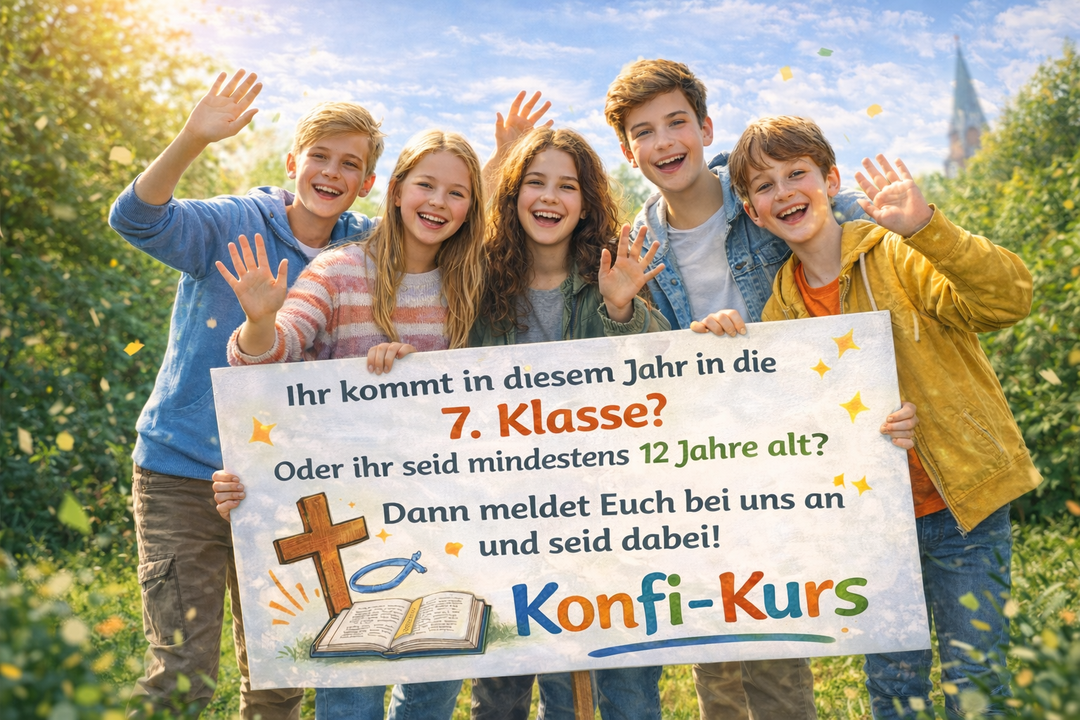 Jeden September geht es bei uns wieder los! Ein neuer Konfirmandenkurs findet statt und wir freuen uns schon jetzt auf Euch! Ihr kommt in diesem Jahr in die 7. Klasse? Oder ihr seid mindestens 12 Jahre alt? Dann meldet Euch bei uns an und seid dabei!